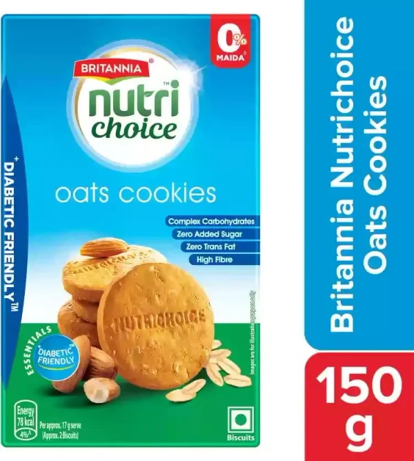 BRITANNIA NutriChoice Essentials Oats Cookies (No Added Sugar & Diabetic Friendly) Digestive, 150 g