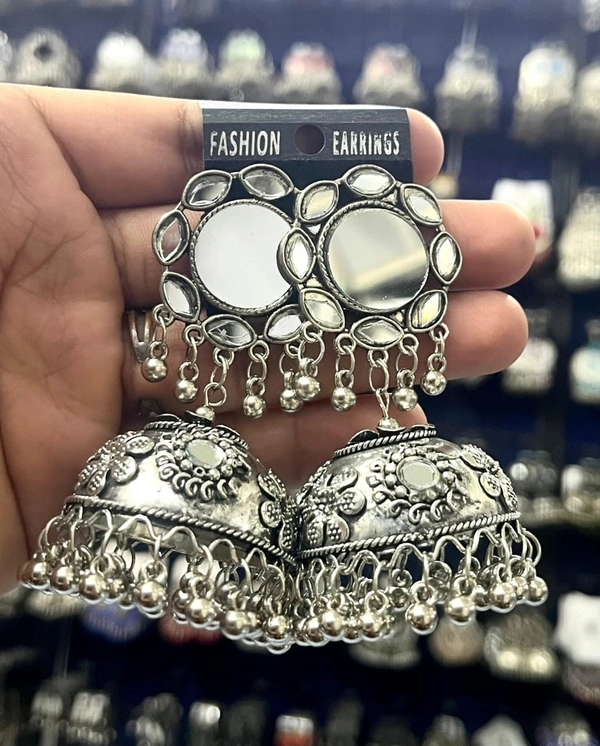 Afgani German Silver Oxidized Jhumki Earrings