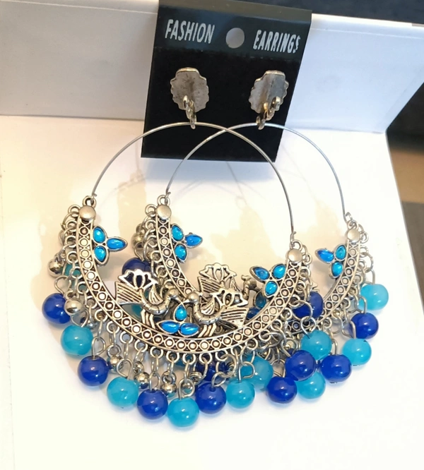 Hamari Queen Blue Duo-Tone Peacock Pearl Drops Mumtaaz Earrings