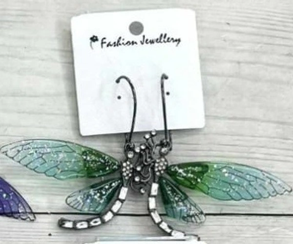 Hamari Queen Dragonfly Firefly Lucite Crystal Wings Earrings