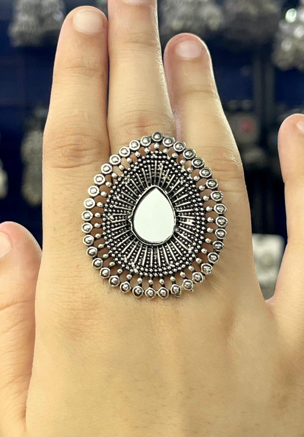 Drop Mirror Pattern Oxidized Vintage Ring