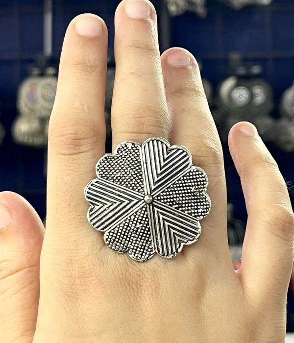Flower Stripes Oxidized Vintage Ring