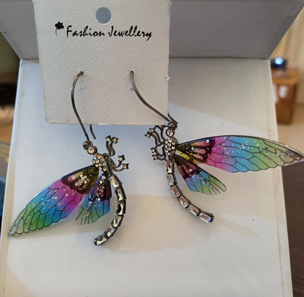 Pink Dragonfly Firefly Lucite Crystal Wings Earrings