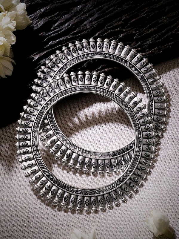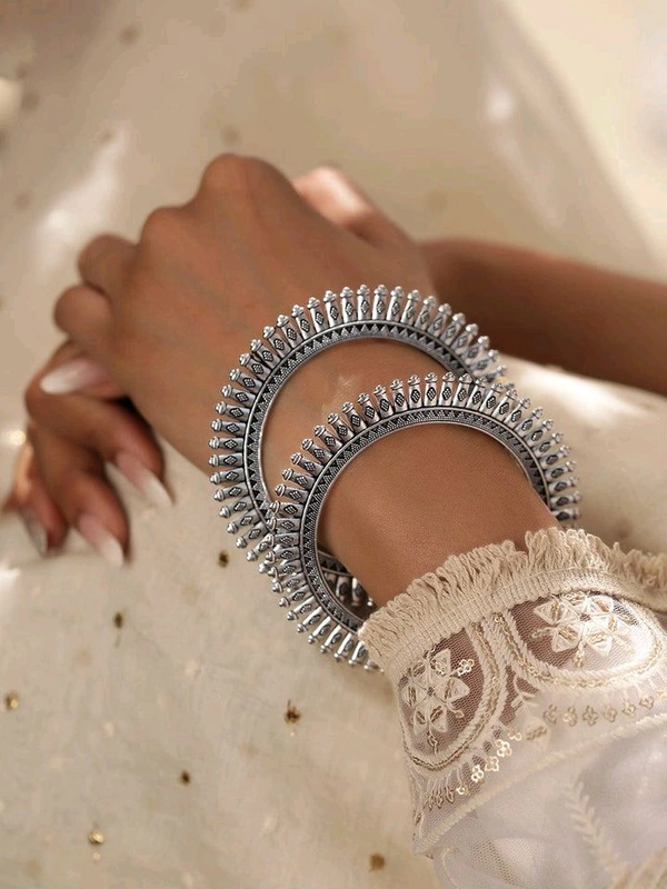 Set Of 2 Vintage-Inspired Oxidized Silver Plated Bangles