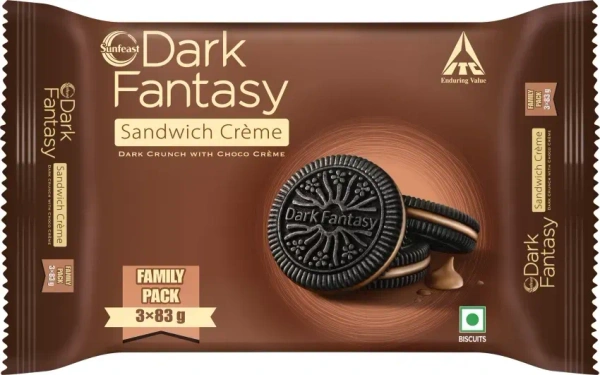 Sunfeast Dark Fantasy Choco Sandwich Crème Biscuits, 249g
